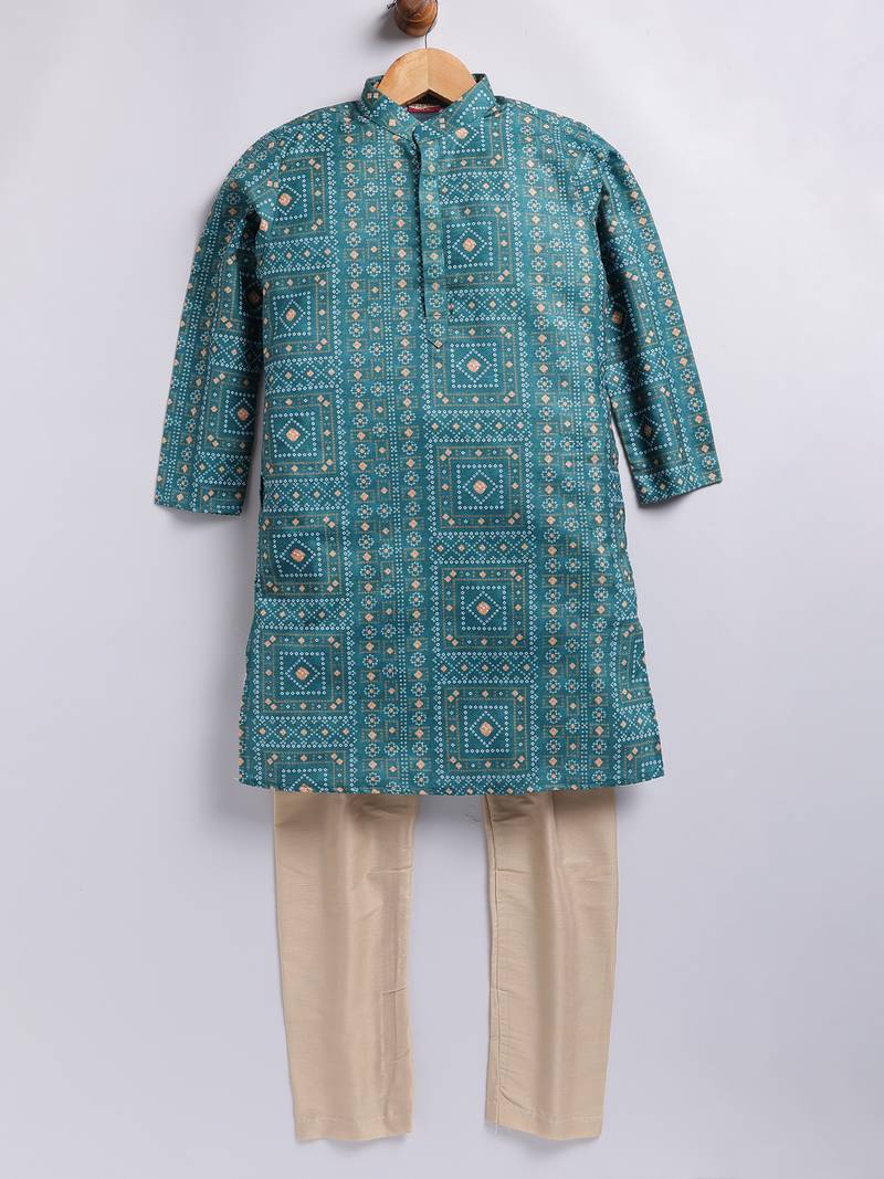 | Product Name | Cotton Knit Full Sleeves All Over Printed Kurta Pyjama Set Green | |