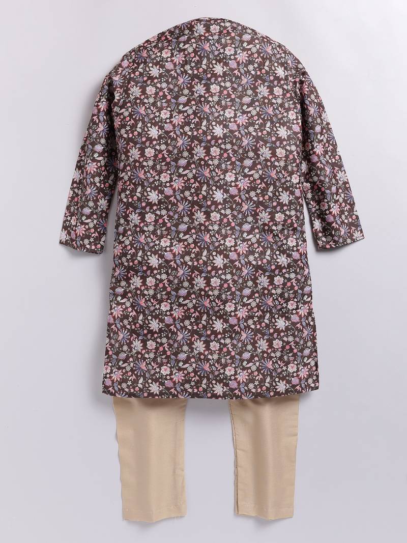 Cotton knit full sleeves all over printed kurta pyjama set - brown
