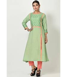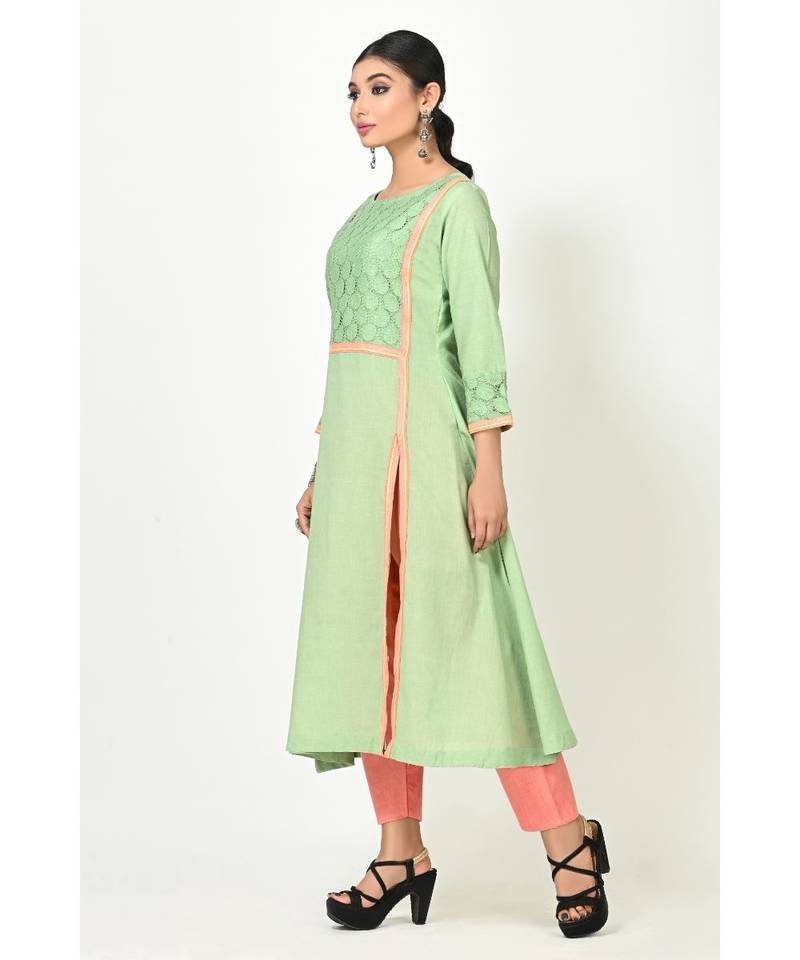 | Product Name | Deep Pista Green Cotton Lacd Work Quarter Sleeves Womens Straight Pant Set | |