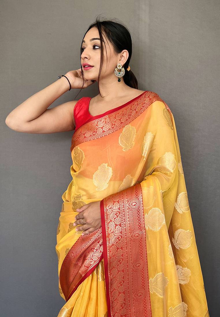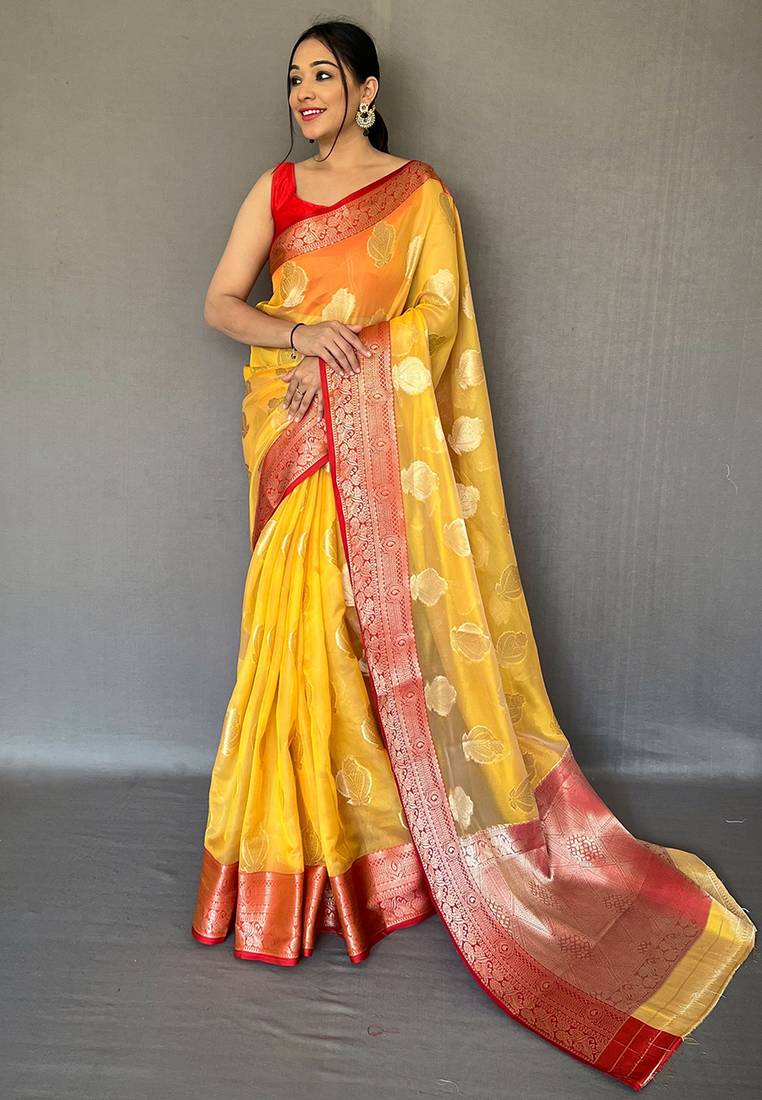 | Product Name | Orange Woven Organza Saree With Blouse | |