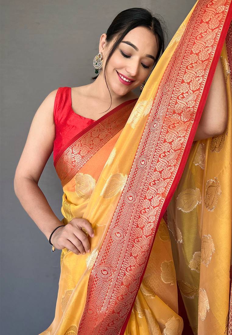 Orange woven organza saree with blouse