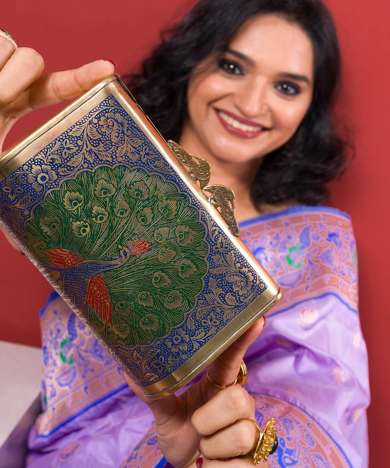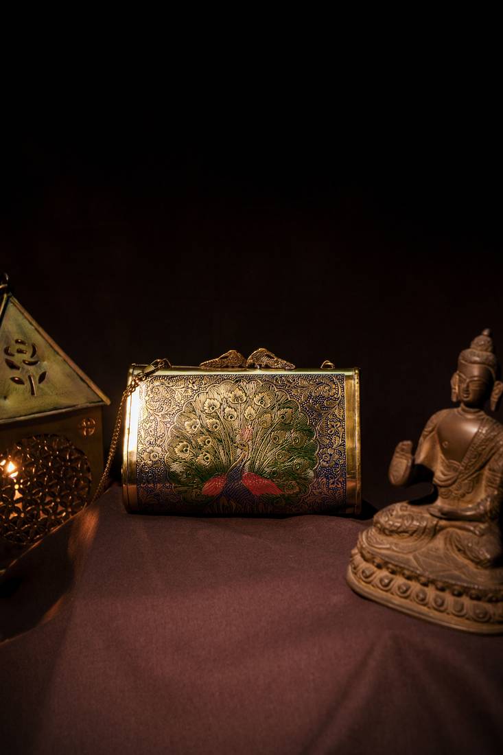 Product Name Ethnic Peacock Engraved Brass Clutch
