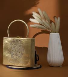 Product Description | A Super Chic, Elegant, And Stylish Brass Handbag With A Modern, Classy Etched Design On Both Sides.Flaunt It At Your Parties Or The Weddings, They Are Sure To Steal The Show.Styled With An Intricately Carved Self Design Round Handle And A Vintage Buckle.Inner Lining In Rich Black Velvet And A Sling Chain Provided For Additional Comfort. |
