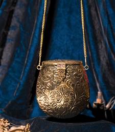 Product Description | A Classic All Over Vintage Design Minaudiere Hand Crafted In Pure Brass.Flaunt It At Your Parties Or The Weddings, They Are Sure To Steal The Show. Styled With An A Antique Buckle Lock. Inner Lining In Rich Black Velvet And A Sling Chain Provided For Additional Comfort |