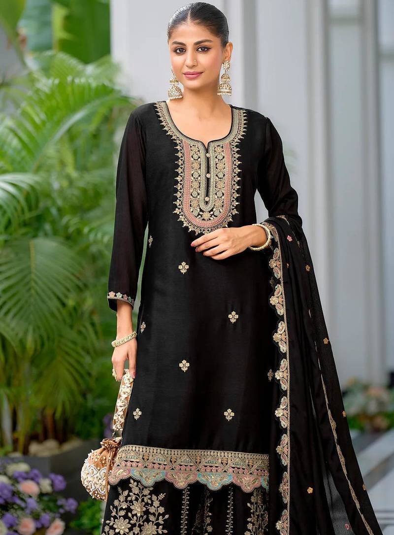 | Product Name | Black Color Chinnon Silk Embroidery Work Palazzo | |