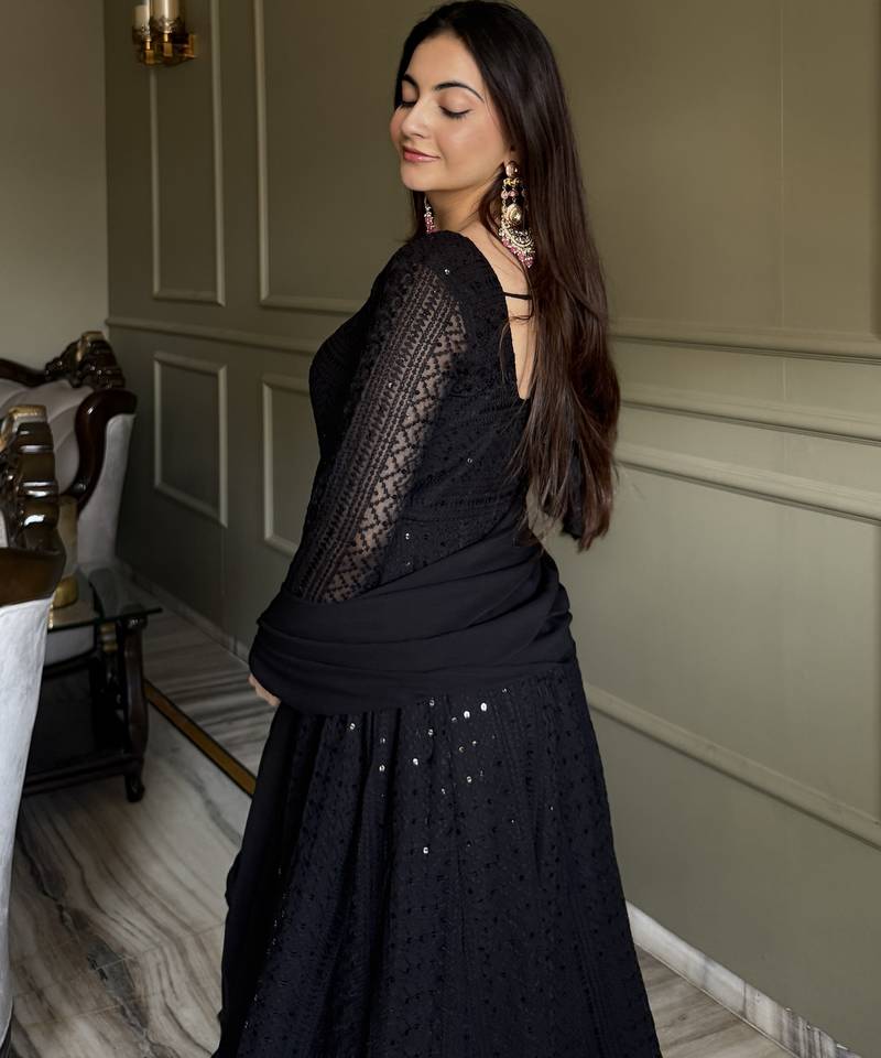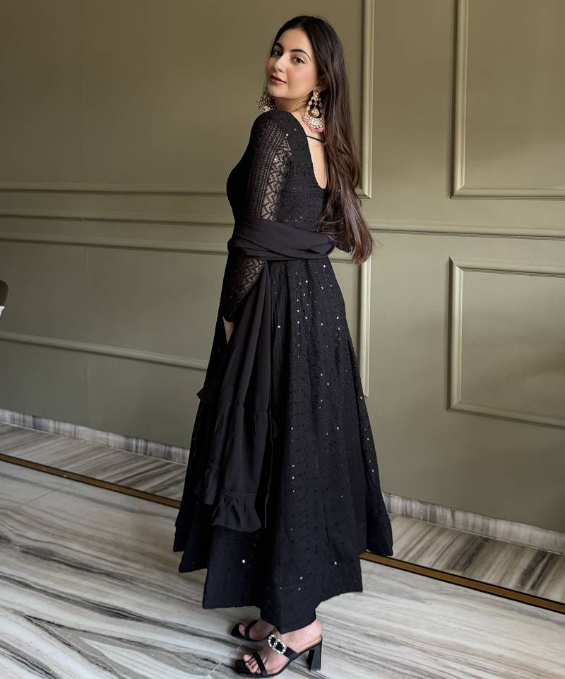 | Product Name | Black Color Faux Georgette Heavy Embroidery Work Functional Wear Gown | |