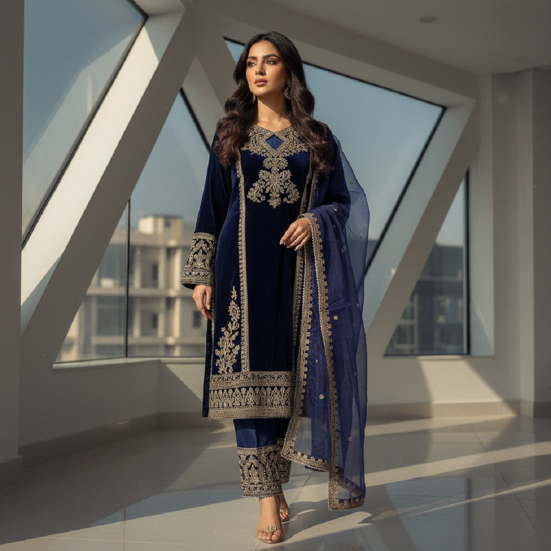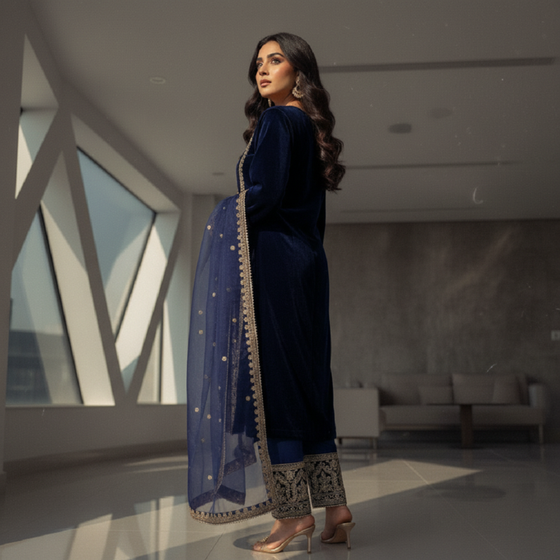 | Product Name | Blue Velevt Fabric Designer Embroidery Work Suit | |