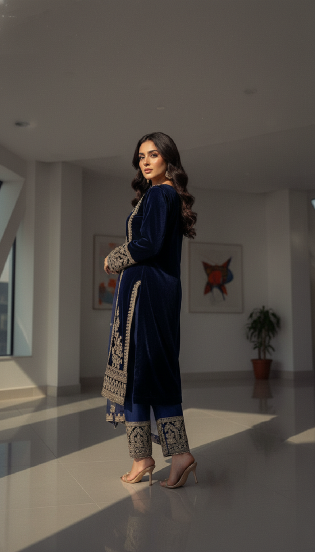 | • | Kameez | : | Color- Blue / Fabric- Velvet |