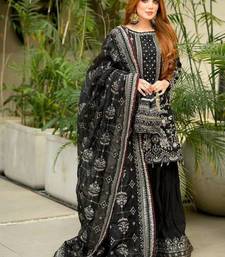 Black faux georgette heavy embroidery work wedding wear palazzo pair stitched