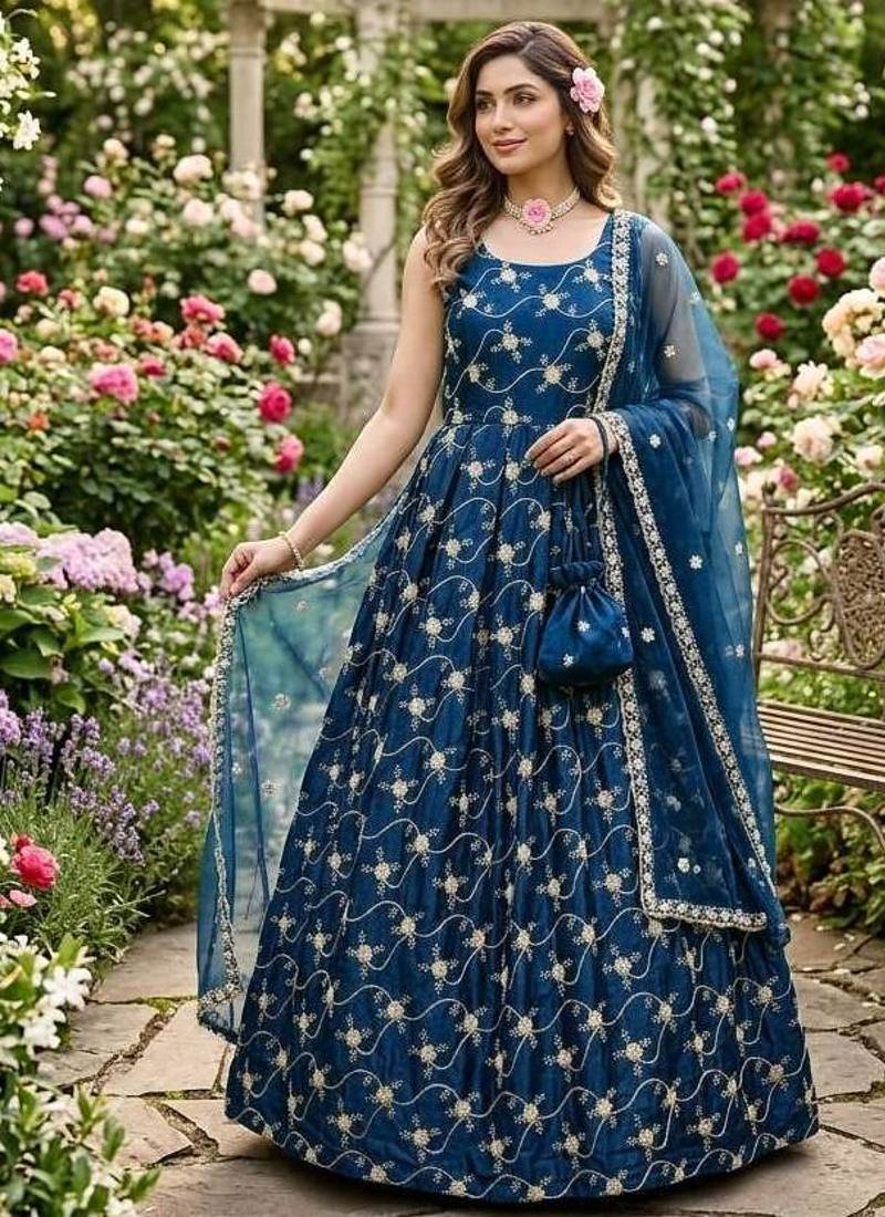 | Product Name | Orange Color Fendy Silk Heavy Embroidery Work Wedding Wear Long Gown | |