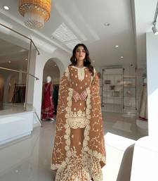 Coffee Gimmy Silk Embroidery Work Wedding wear palazzo Set
