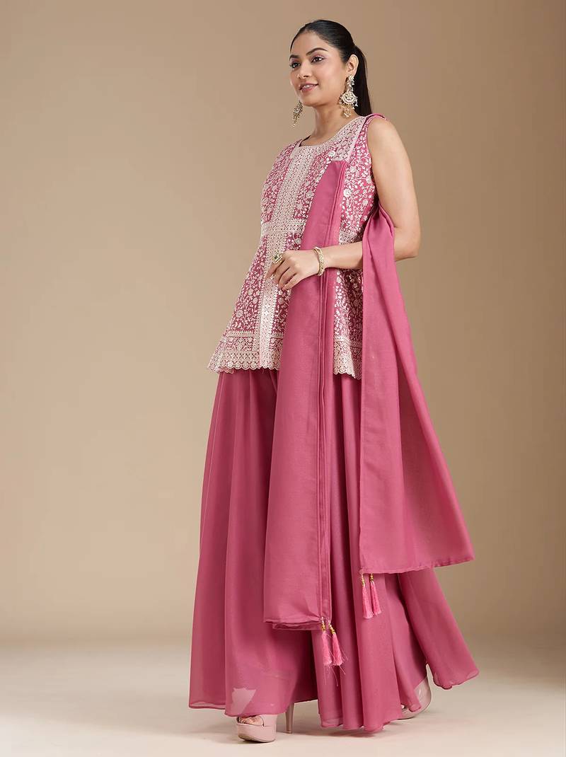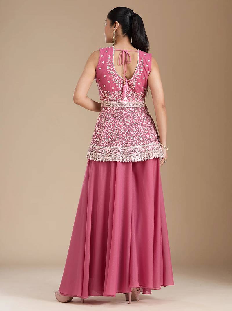 | Product Name | Pink Color Star Georgette Party Wear Designer Peplum Sharara Set | |
