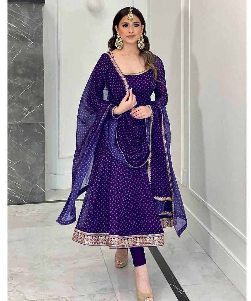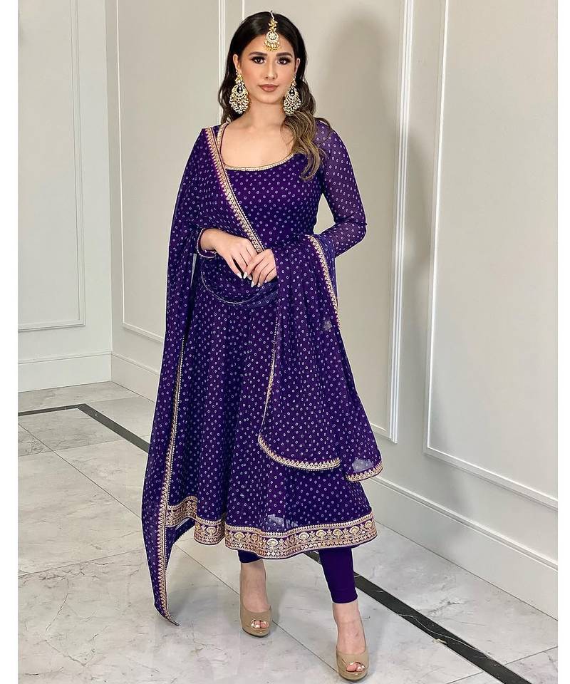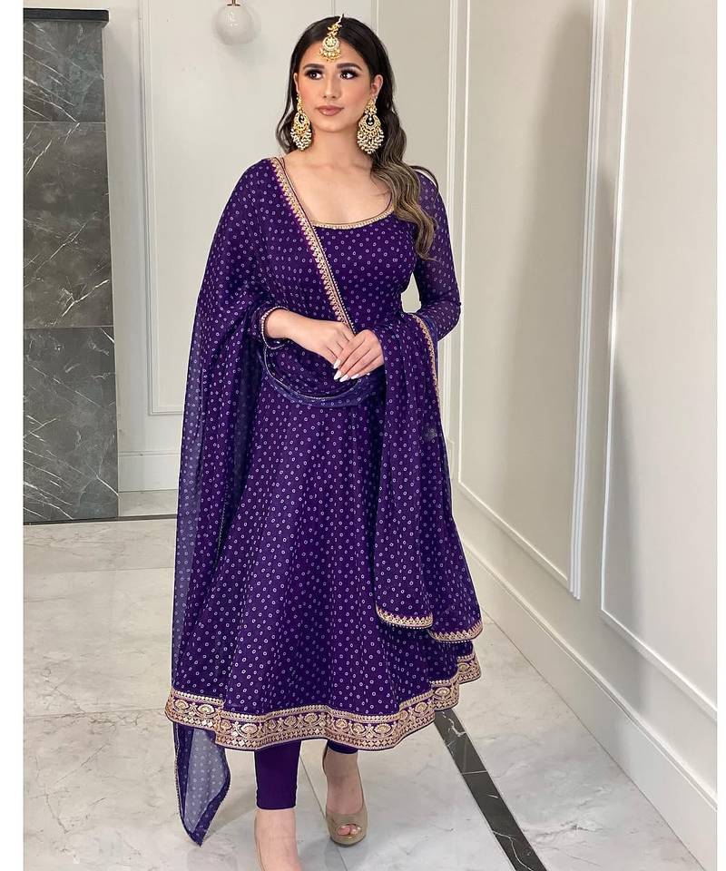 Purple color bandhni print with embroidery work functional wear gown stitched