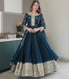 | Product Name | Teal Heavy Crush Silk Wedding Wear Embroidery Work Long Gown | |