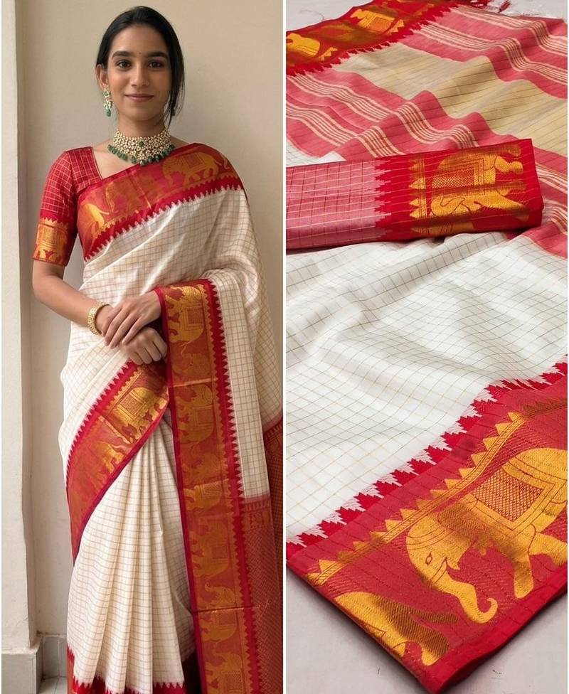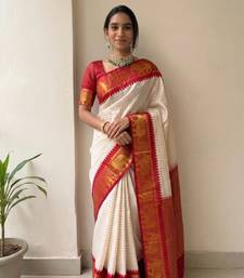 White mercerised cotton silk traditional wear saree