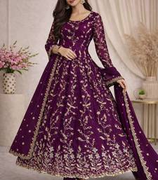 Wine fendy satin heavy embroidery work long wedding wear gown stitched