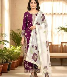 Wine fendy silk embroidery work designer party wear salwar suit stitched