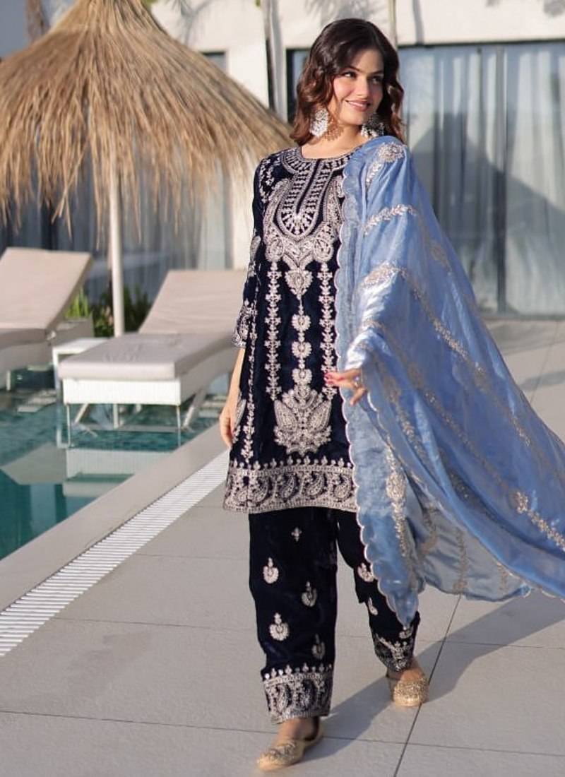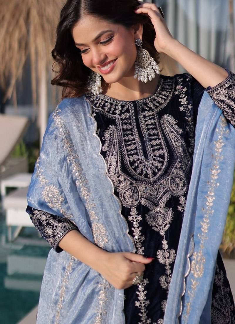 | Product Name | Womens New Fancy Velvet With Rich Zari Embroidered Work Kurta Set | |
