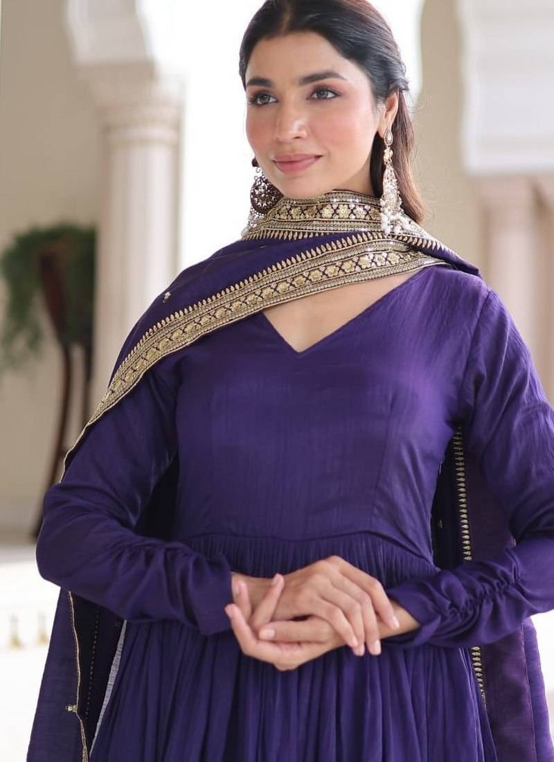 | • | Dupatta | : | Color- Purple / Fabric- Silk |