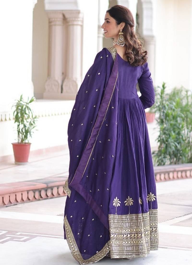 | Product Name | Womens New Fancy Vichitra Silk With Rich Sequins Embroidered Work Gown Set | |
