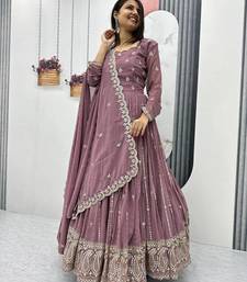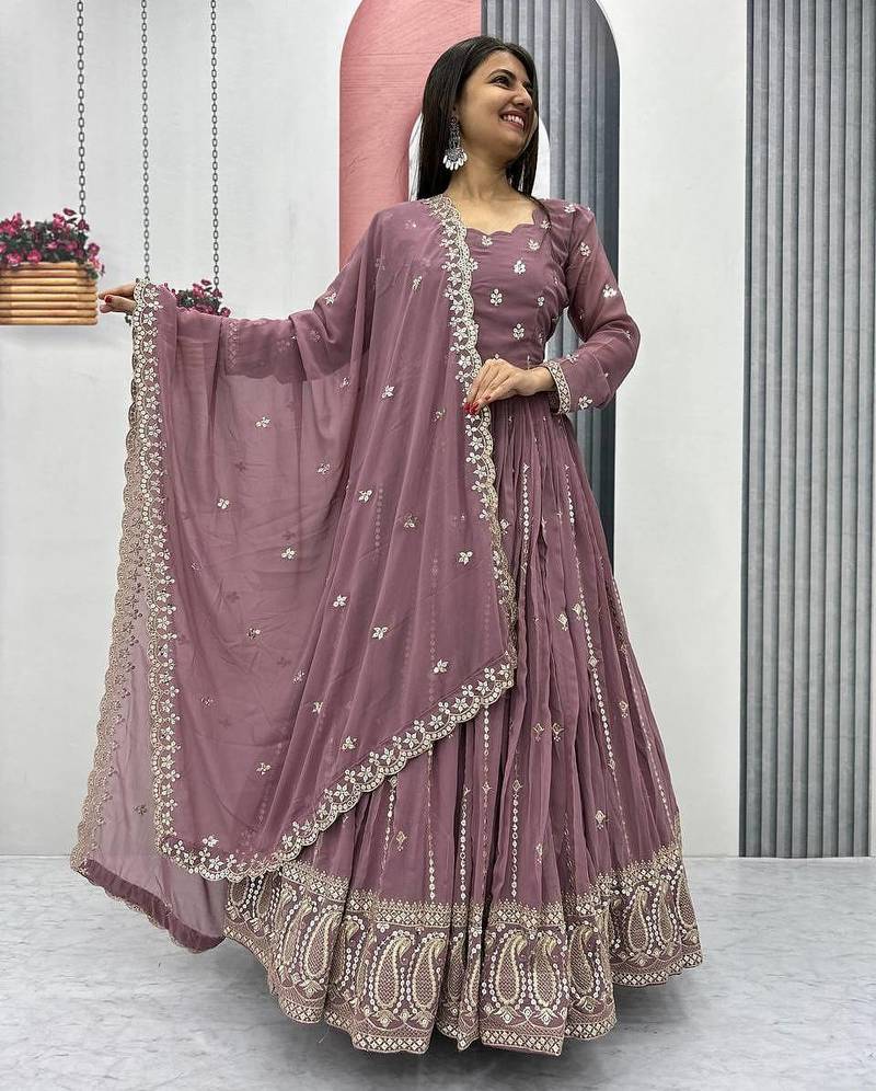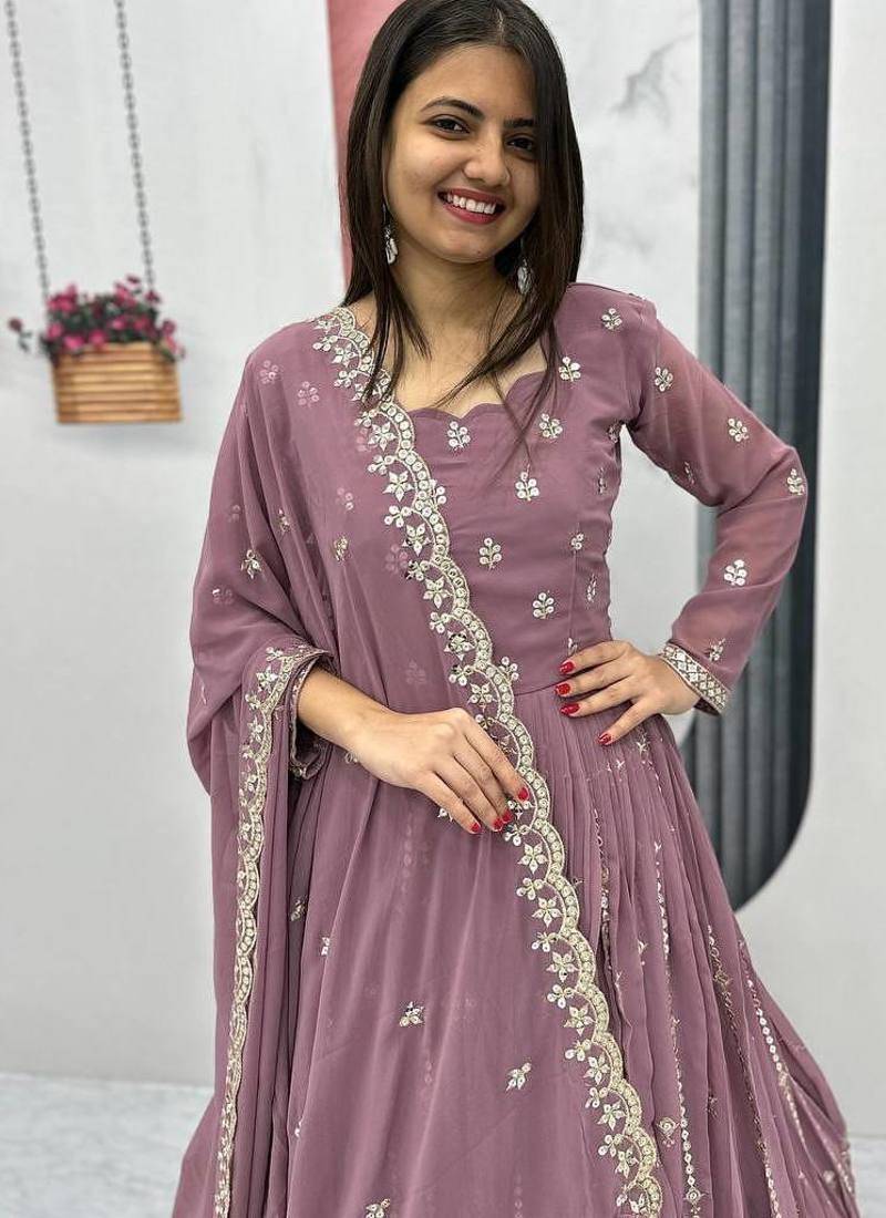 Womens new heavy fox georgette fabric with heavy embroidery wrok gown set stitched