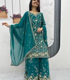 Womens new heavy fox georgette fabric with heavy embroidery wrok kurta set stitched