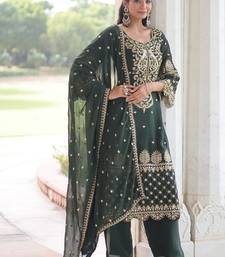 Womens new trendy faux blooming with embroidered work kurta set stitched