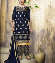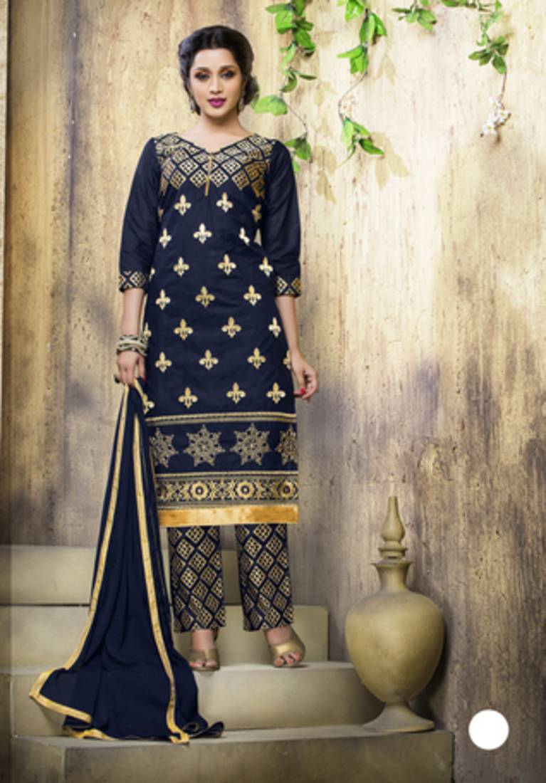 Navy blue cotton lawn embroidered semi stitiched salwar with dupatta