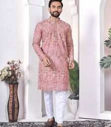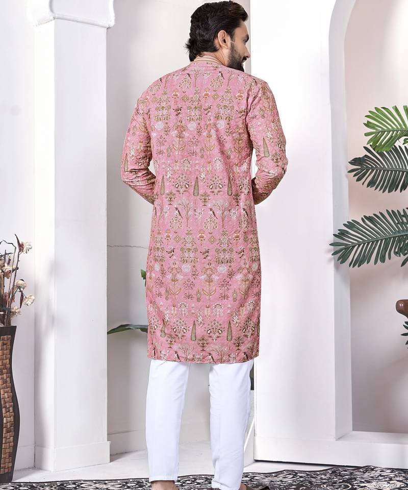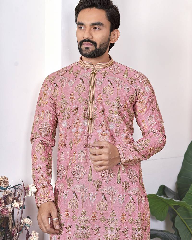 Peach digital printed work cotton straight kurta