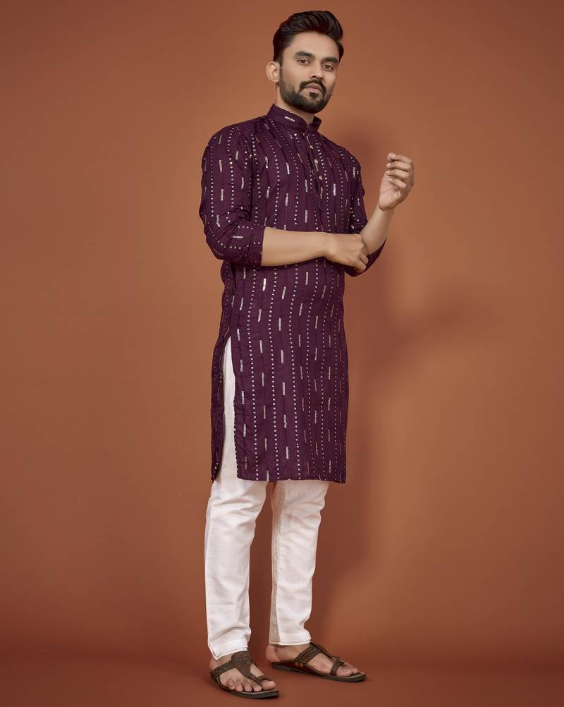 Purple embroidered cotton straight kurta
