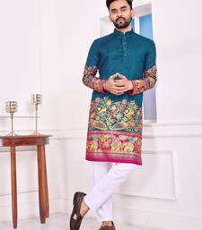 | Product Name | Teal Dola Silk Straight Kurta With Foil Work | |