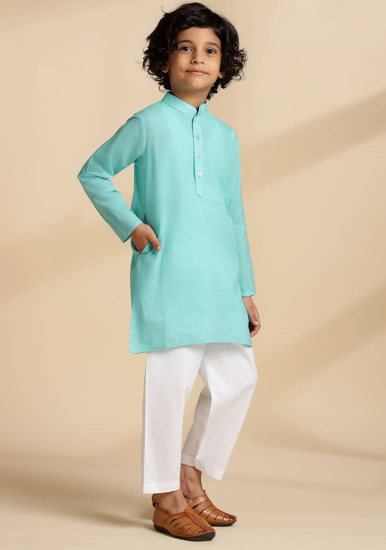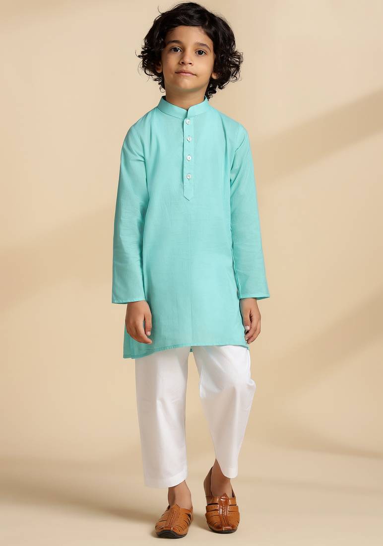 Blue plain cotton kurta set