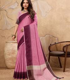 Pink printed linen casual wear saree with blouse
