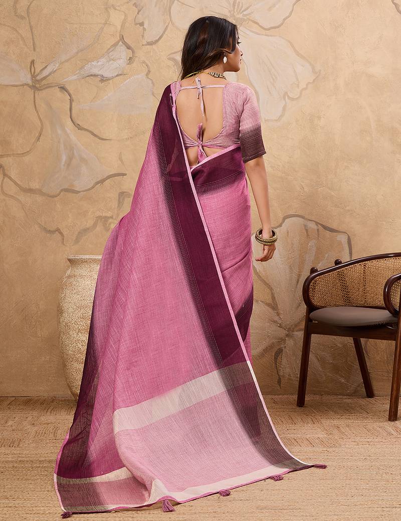 | Product Name | Pink Printed Linen Casual Wear Saree With Blouse | |