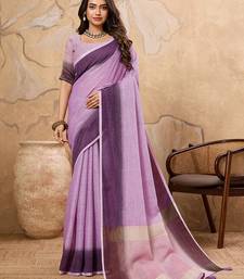 Purple printed linen casual wear saree with blouse