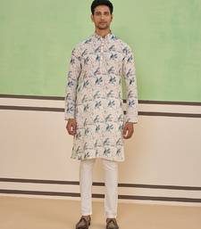 Beige cotton silk plain kurta for men's