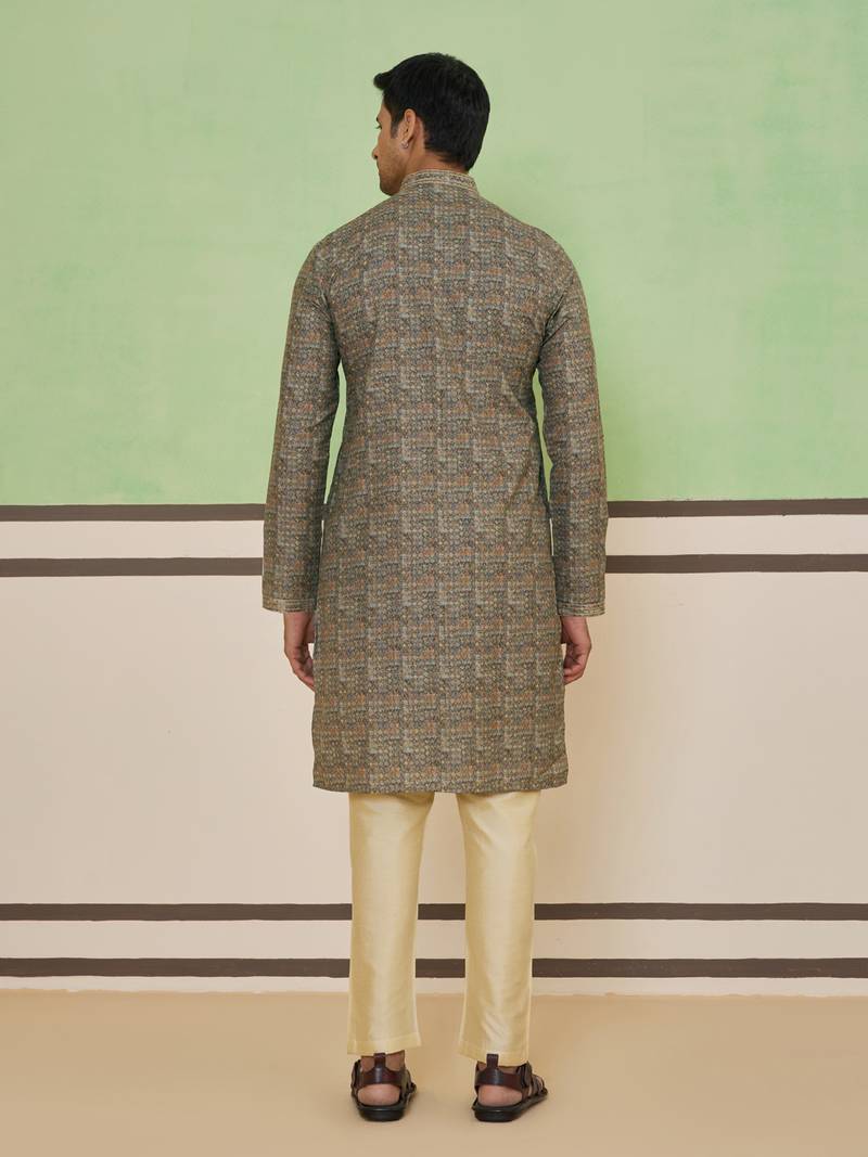 Beige mosaic print kurta set