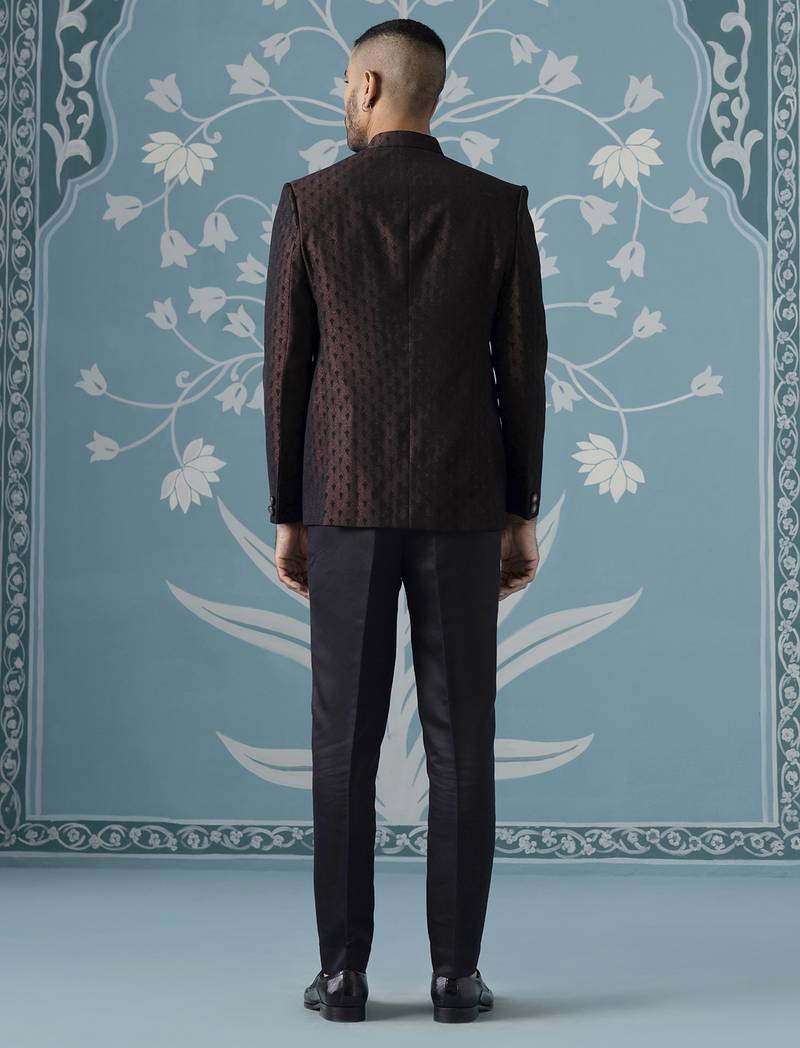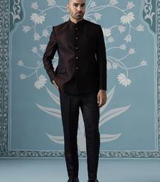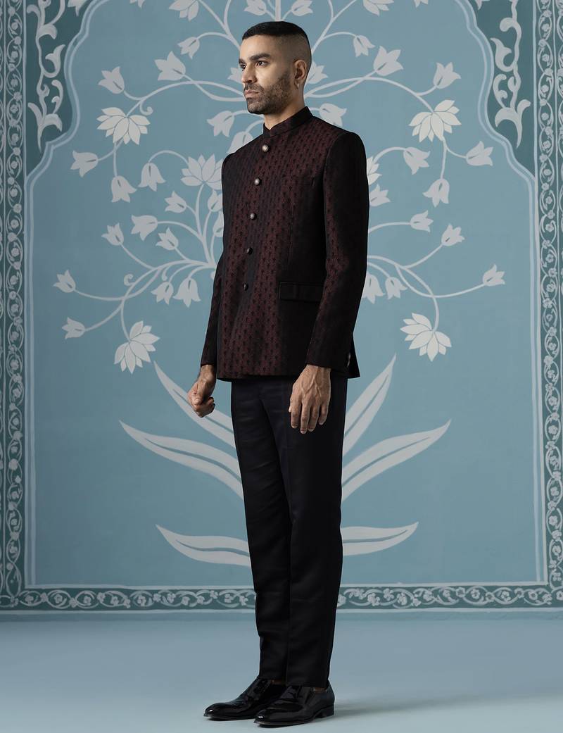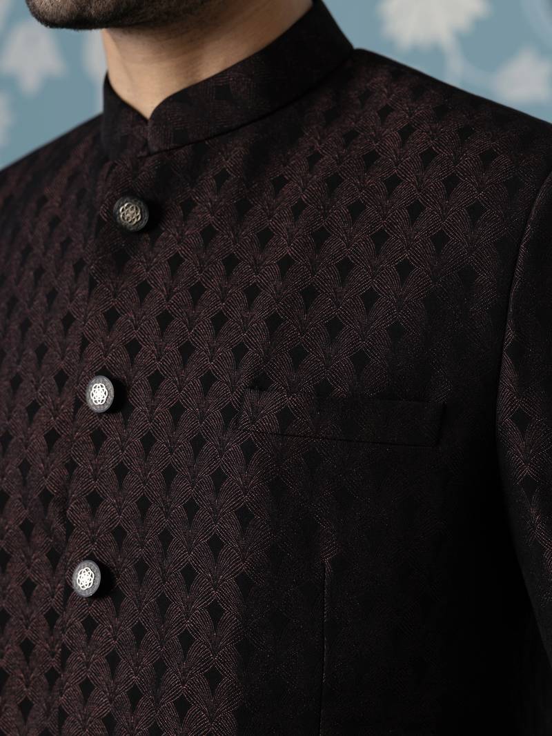 Black maroon textured bandhgala suit
