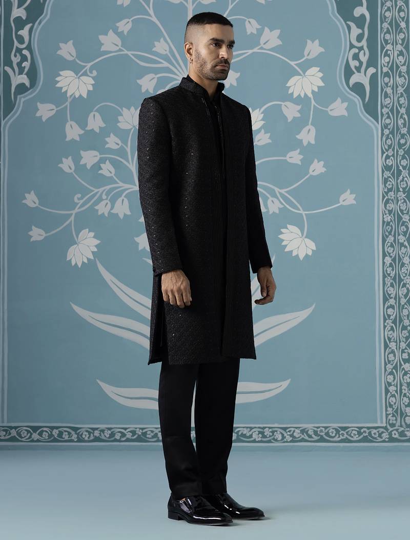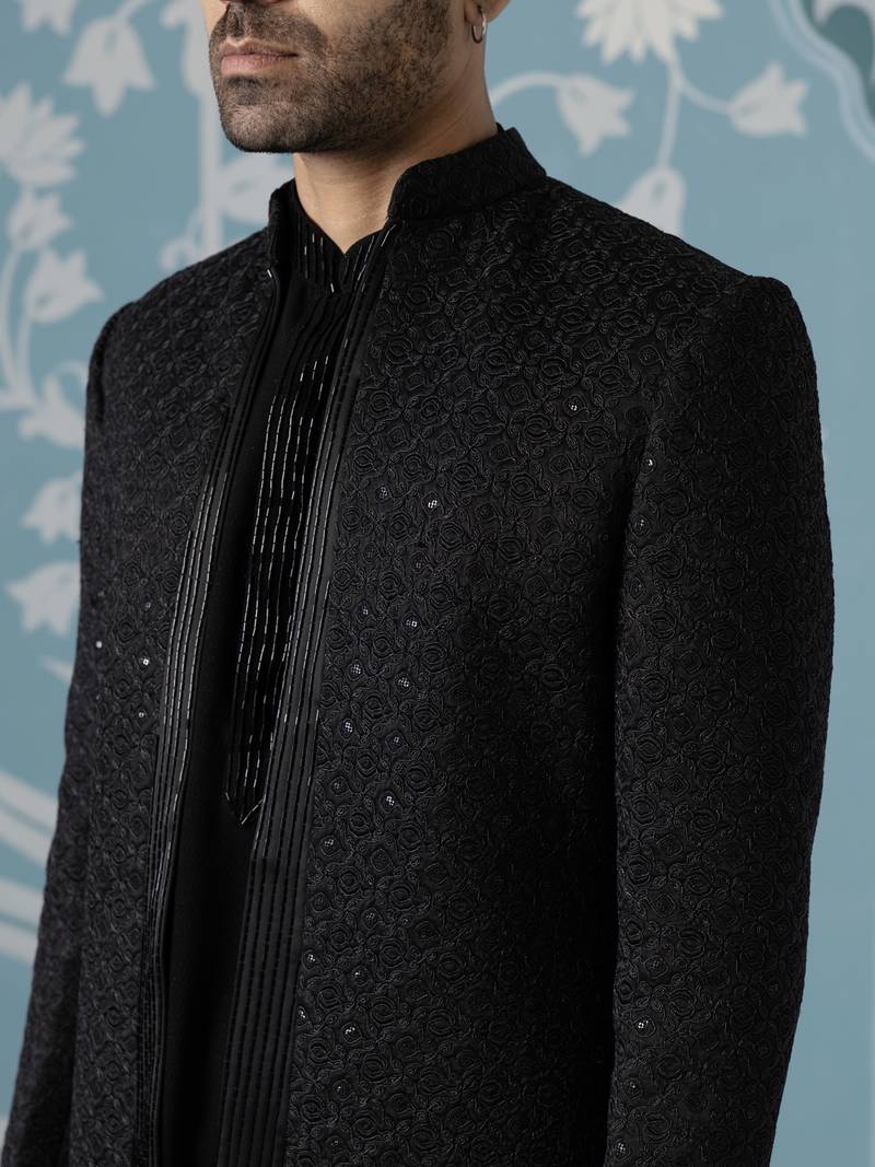 Black self design satin indo western