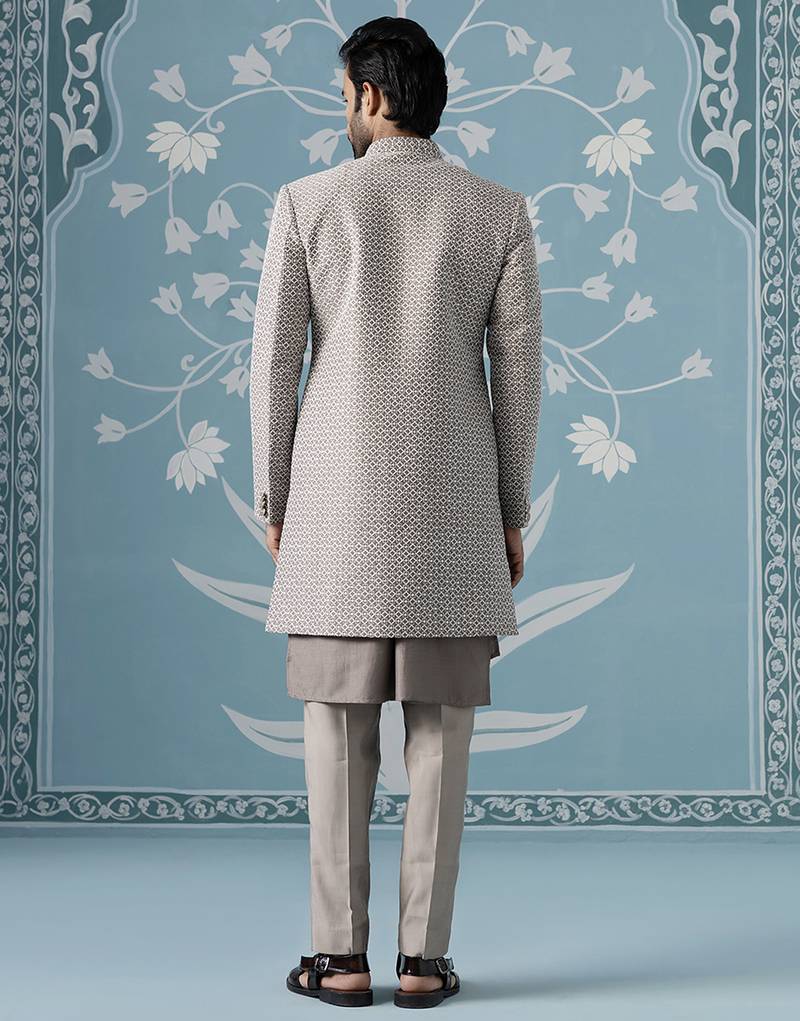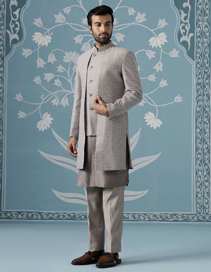 Grey embellished polyester indo western