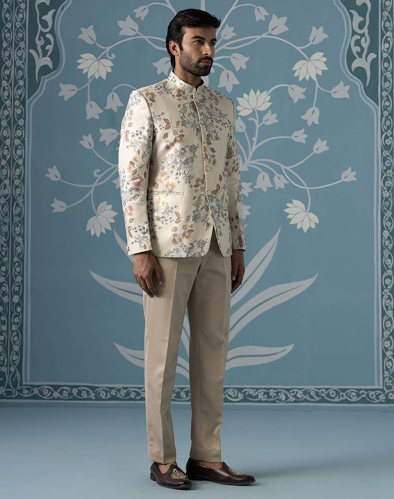 Digital printed bandhgala with machine touch-up