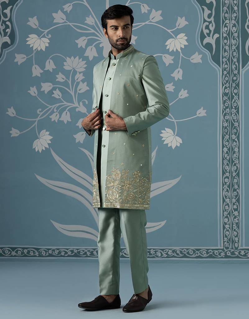 | Product Name | Dusky Green Long Jacket Semi Sherwani Set | |