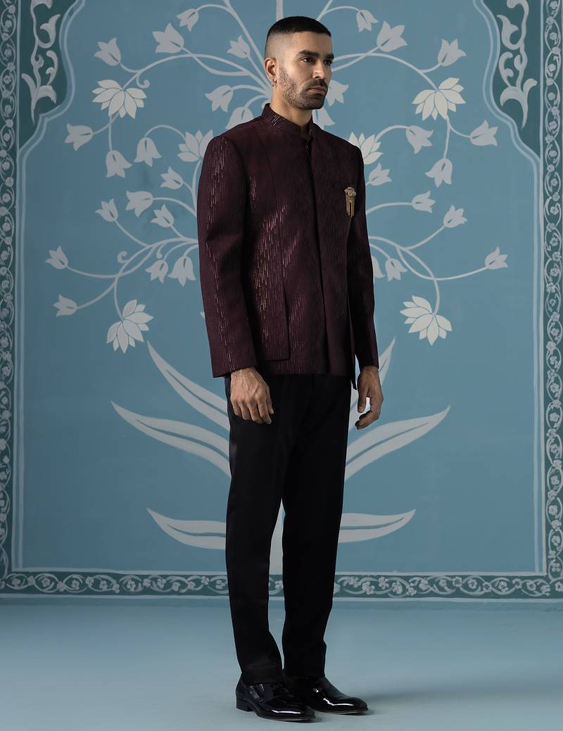 Elegant self-textured geometric bandhgala set