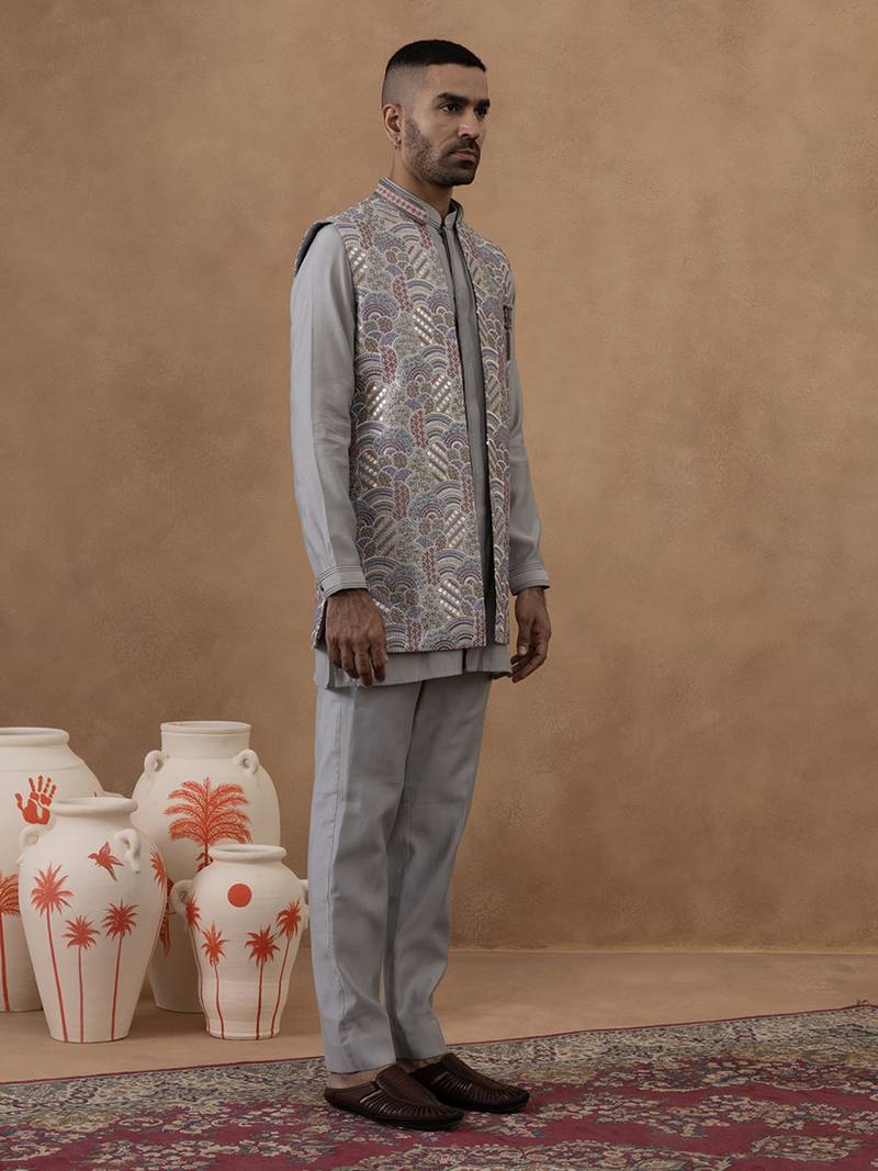 | Product Name | Grey Embroidered Indo Western Jacket Kurta Set | |