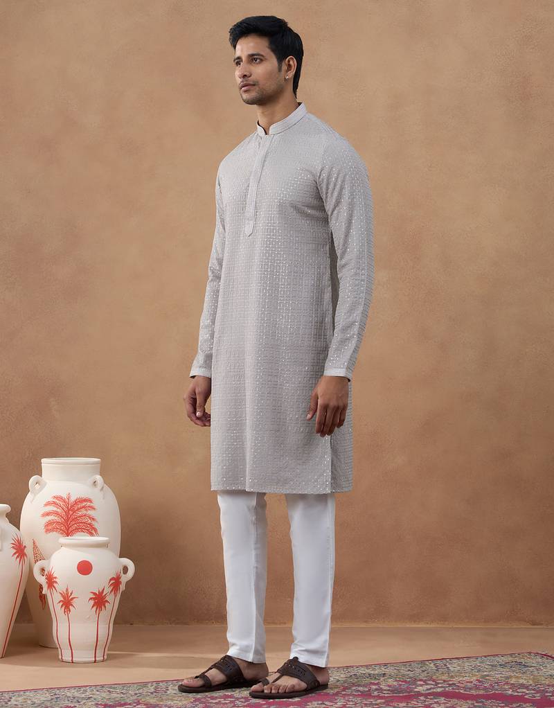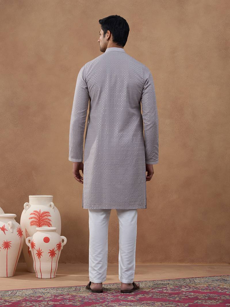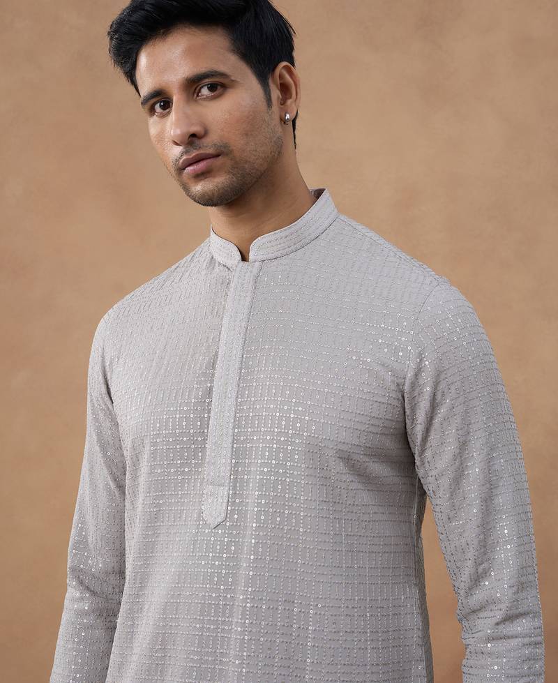 Grey self-texture sequin kurta set