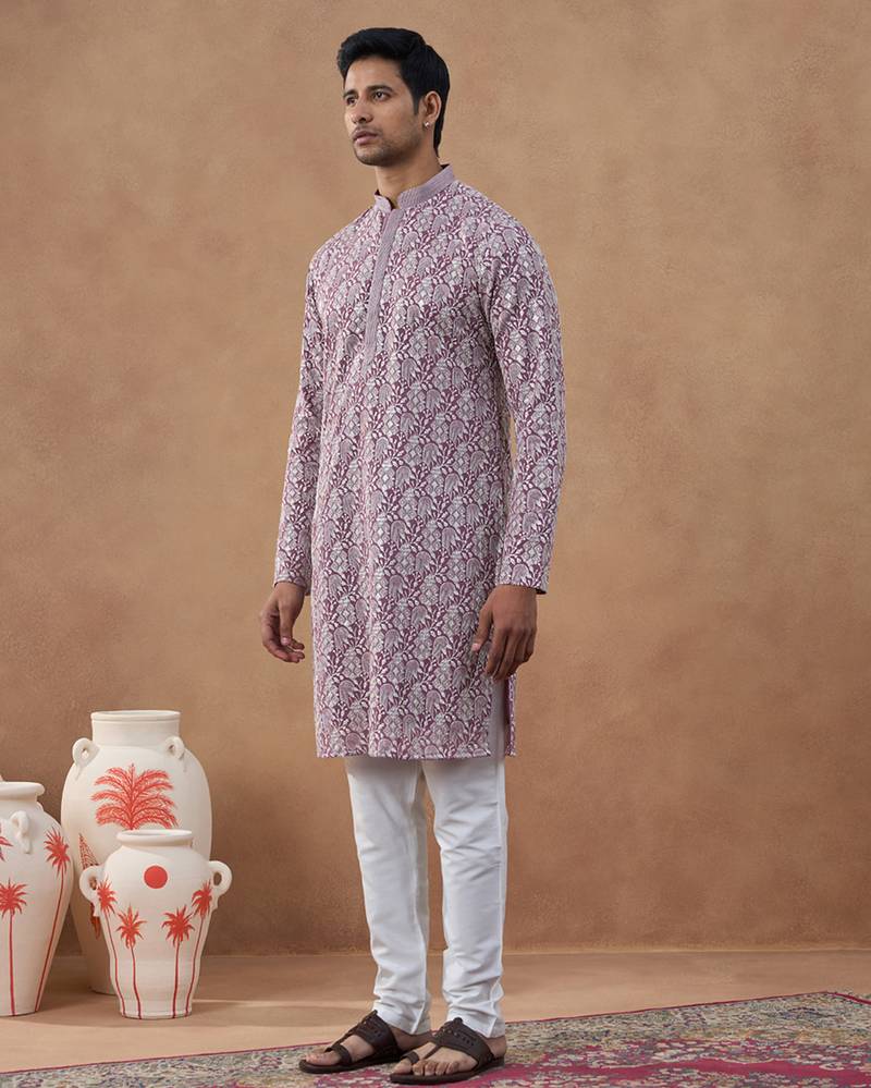 Lavender textured brocade kurta set