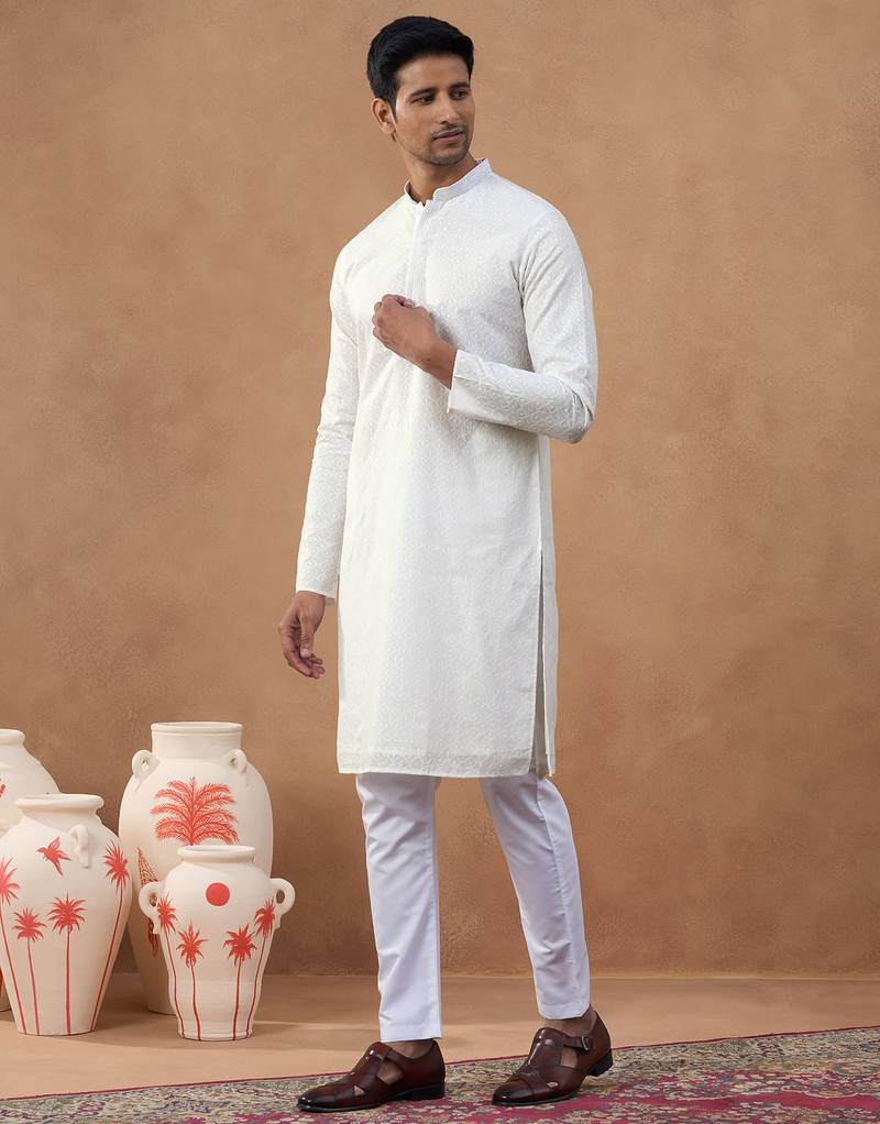 Off white cotton kurta set