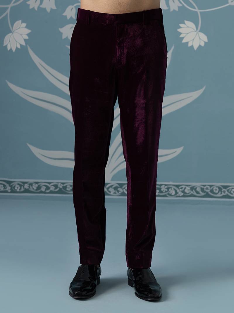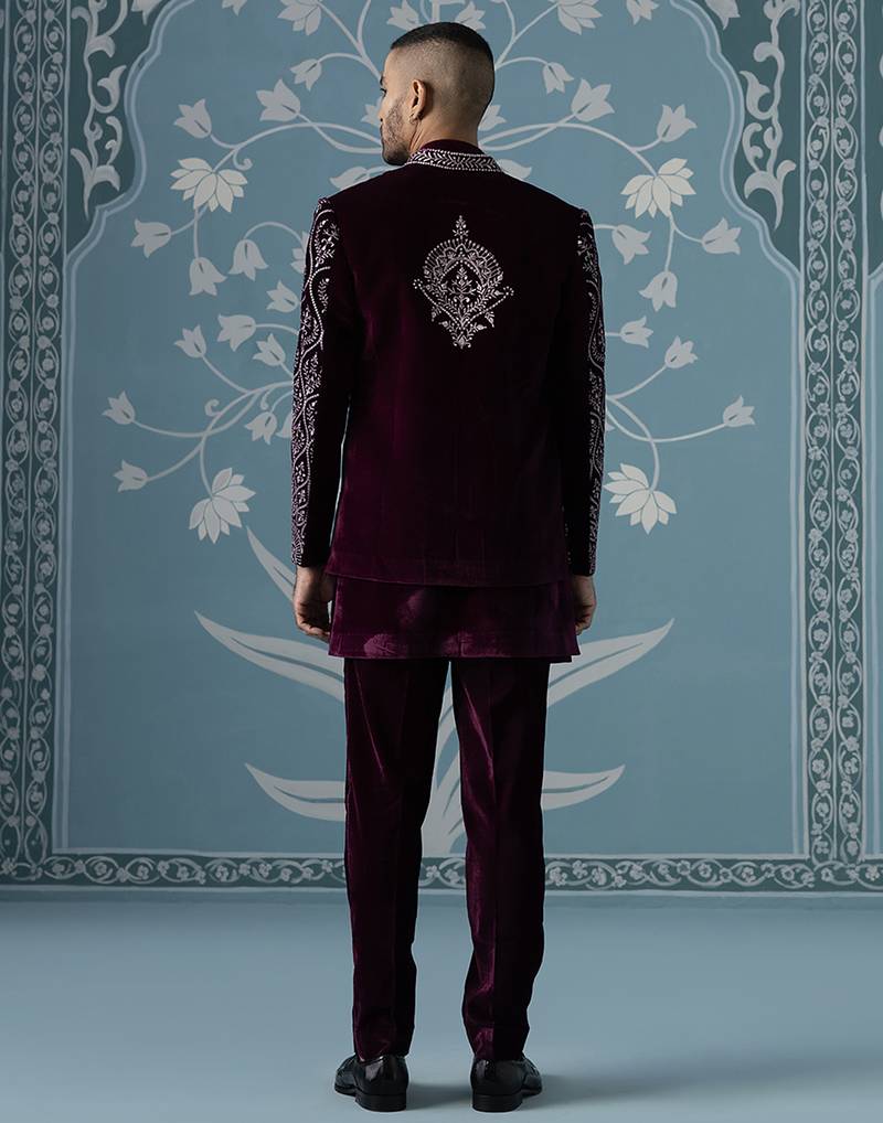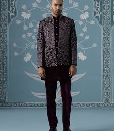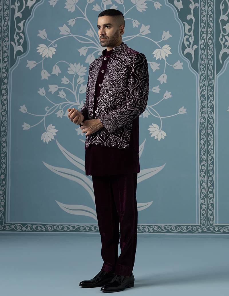 Purple embroidered velvet indo western