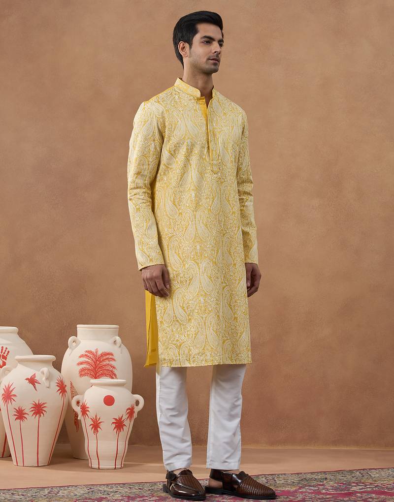 | Product Name | Yellow Cotton Silk Embroidered Kurta For Men's | |