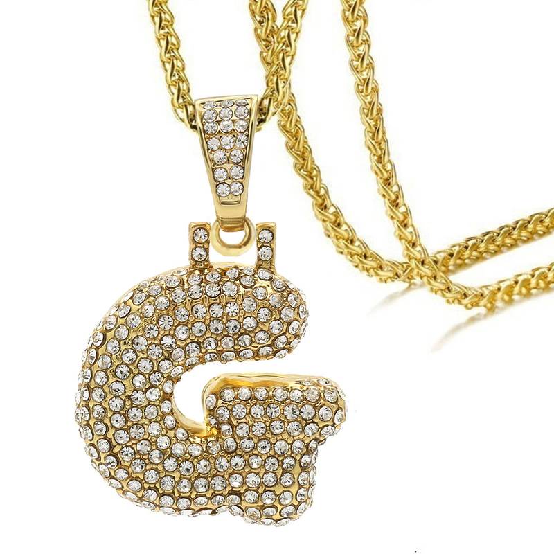 Hip hop iced out alphabet initial letter g 18k gold rope 22" chain initial necklace pendant women men